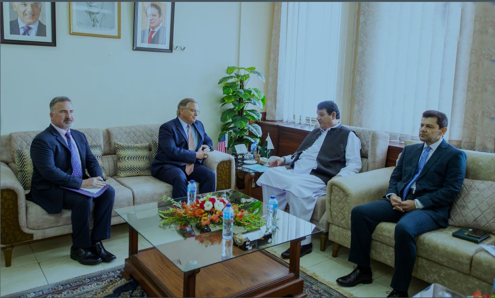 Islamabad, August 8, 2024 – Federal Minister for States and Frontier Regions Engr. Amir Muqam and Secretary SAFRON, Mr. Zafar Hasan met with U.S. Ambassador, Donald Bloom.